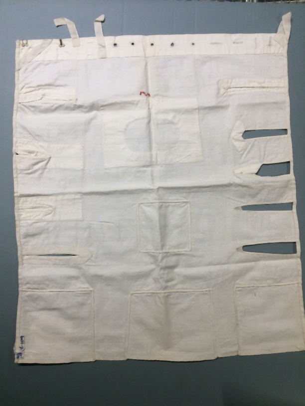 Naailap van wit katoen, initialen I.d.W. met vier verstelstukken, splitten, hals, bandjes, oogje, haakje en knoopsgaten