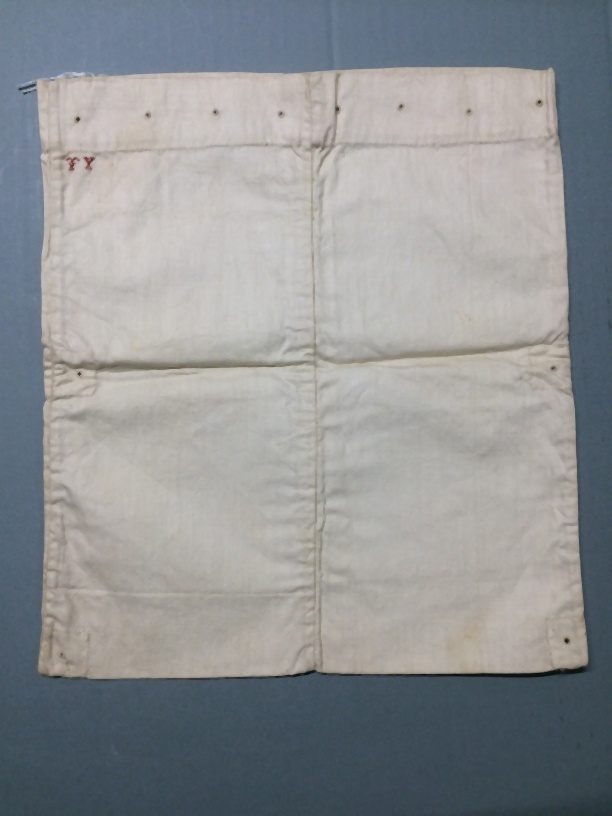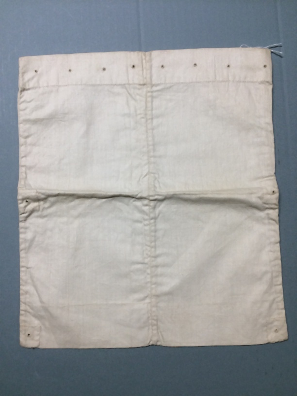 Proefstuk naaien, wit linnen met diverse nestelgaten