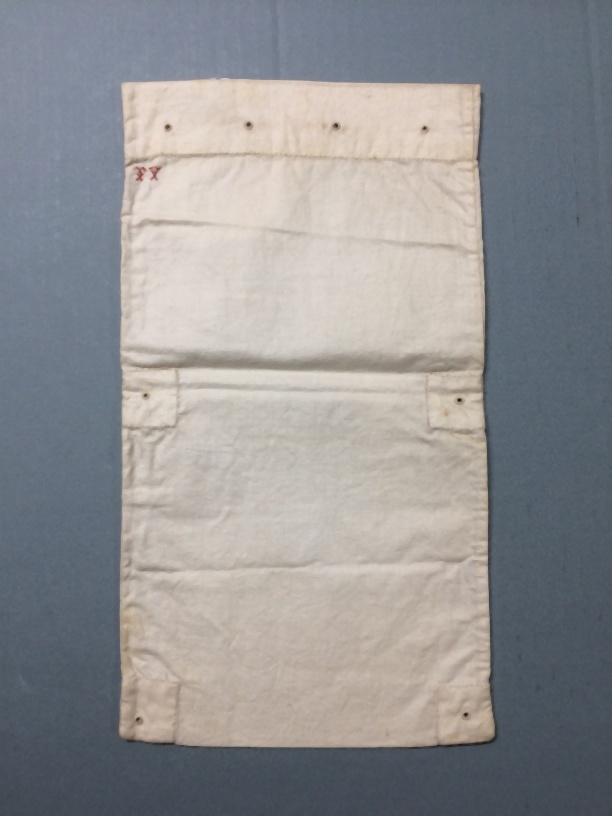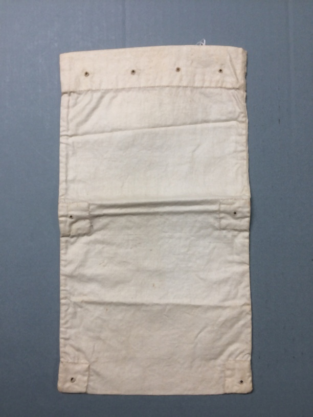 Proefstuk naaien, wit linnen met diverse nestelgaten