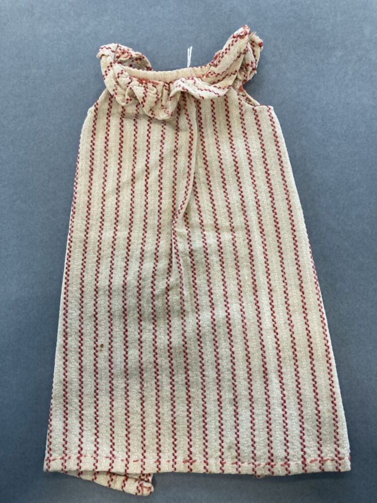 poppenboezelaar van witte katoen met ingeweven rood-witte verticale streep