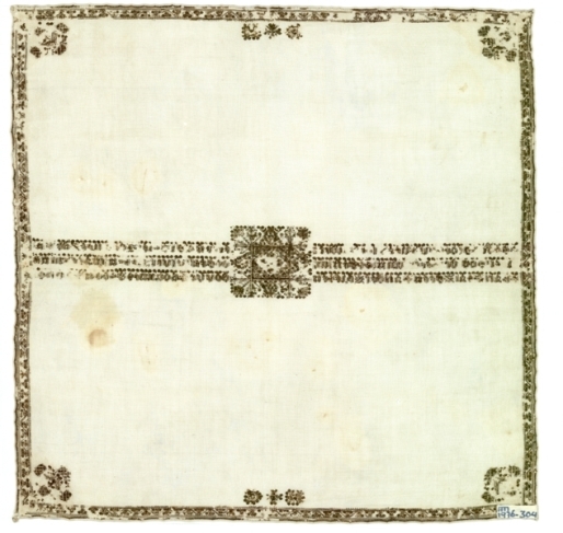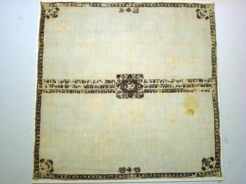 Knottedoek met vierkant motief en tekst van Douwe Hommes Soon