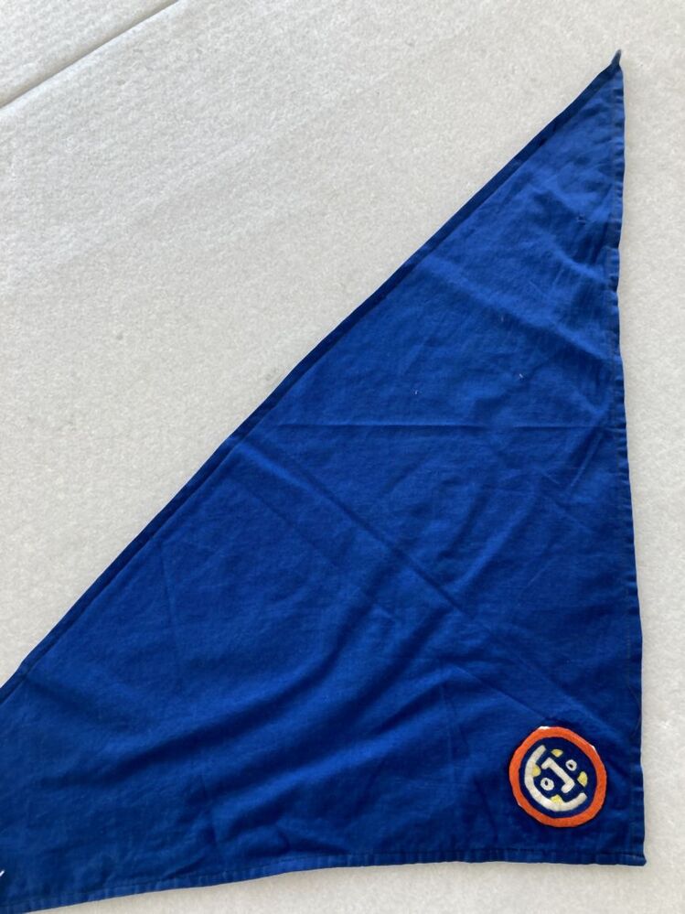 Blauwe 'das', halsdoek van de Padvinderij met geborduurd insigne
