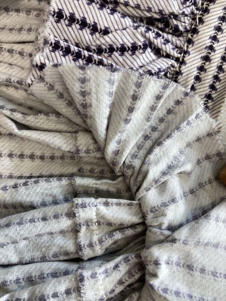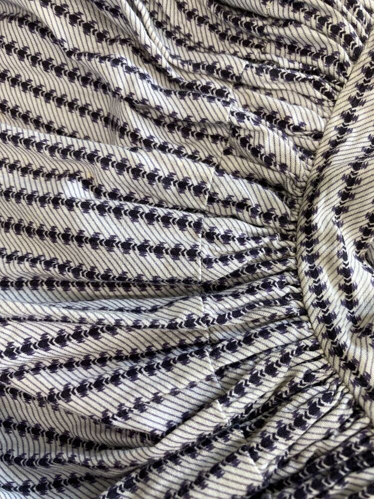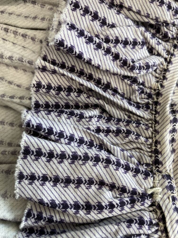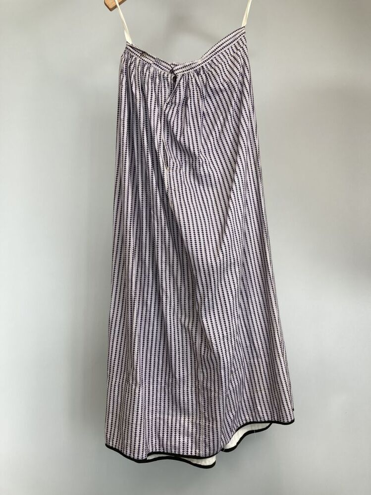 Kostuum rimpelrok van paars-wit gestreept bedrukt katoen