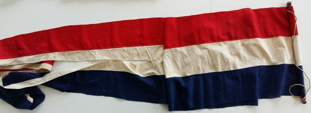 Een wimpel is een smalle strook stof, die aan een vlaggenmast wordt bevestigd en die geheel zelfstandig boven in de mast, of anders direct boven de vlag komt te hangen. (Wikipedia) https://data.cultureelerfgoed.nl/term/id/cht/06f83cfc-06b6-49c9-8bb8-0f9688f9ef12