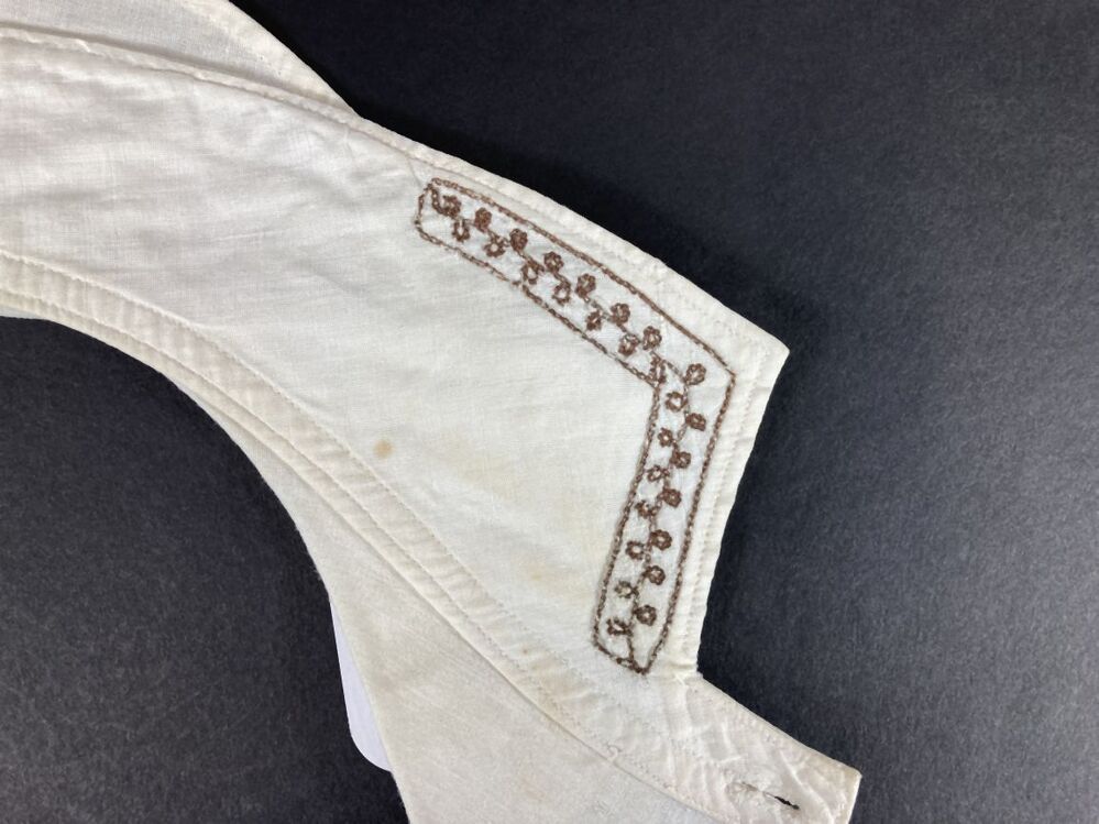 Kraagje van wit katoen met goud borduurwerk en met schouderstuk