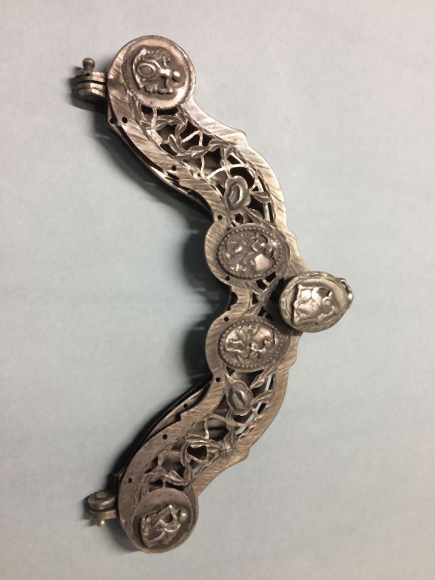 Zilveren tasbeugel met in medaiilons Bacchus, herders en forticulo