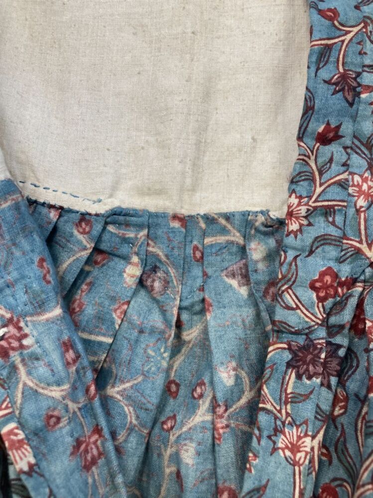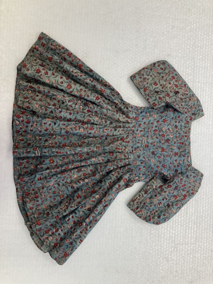 Bedrukt katoenen kinderjurkje, met krullende bloemranken op lichtblauwe grond