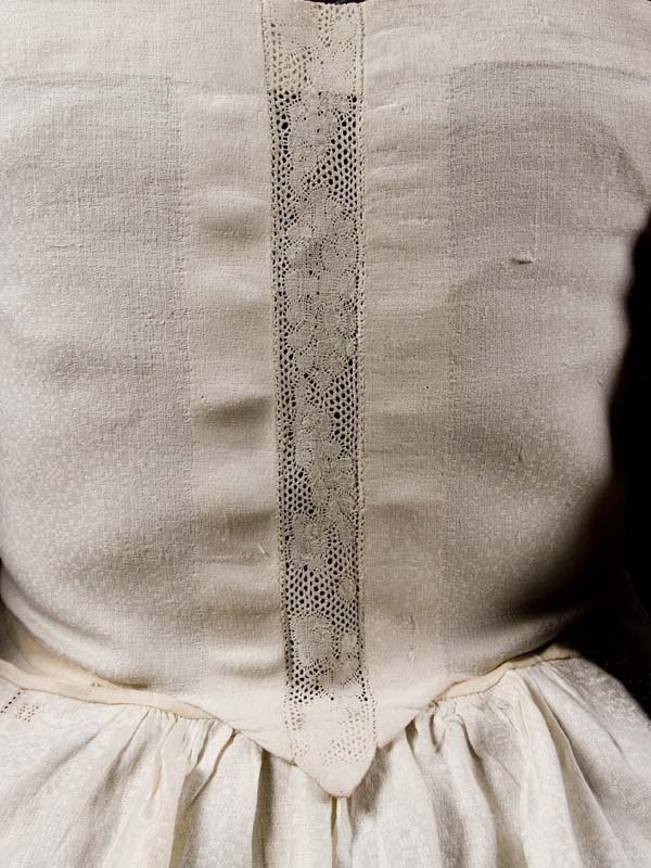 Borstlap van wit linnen damast, pellen in ruitmotief, met kloskant tussenzetsel