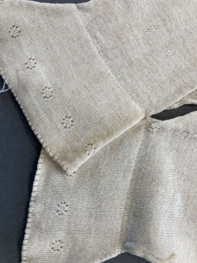 Paar handschoenen breisel van wit katoen, recht tricot