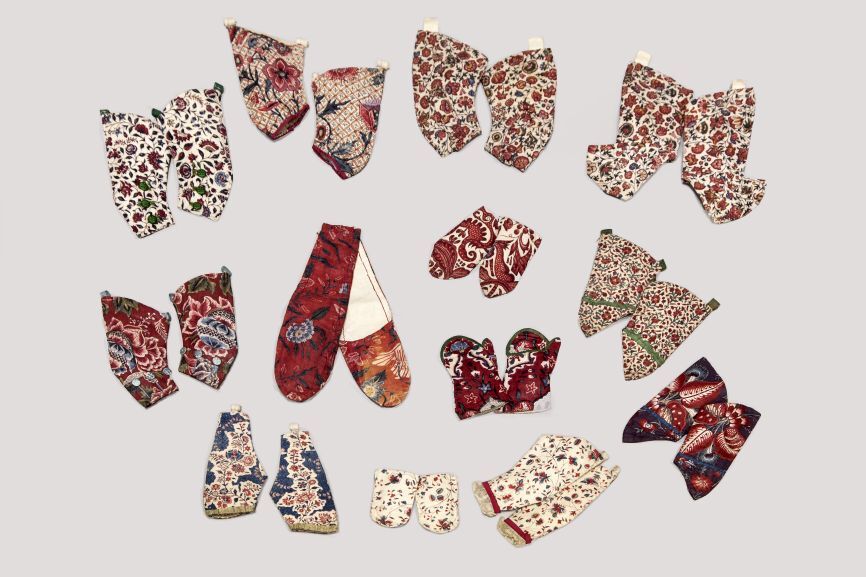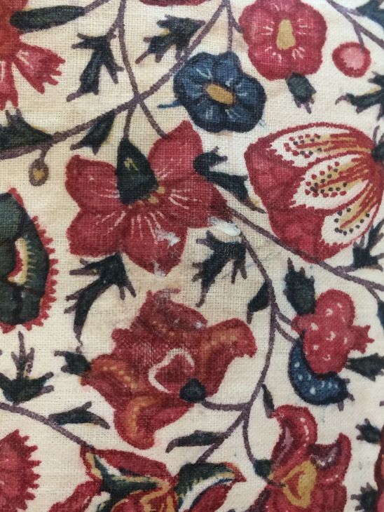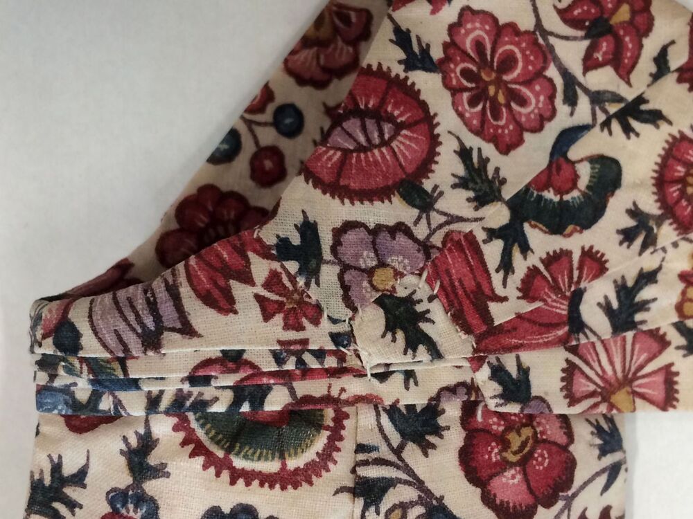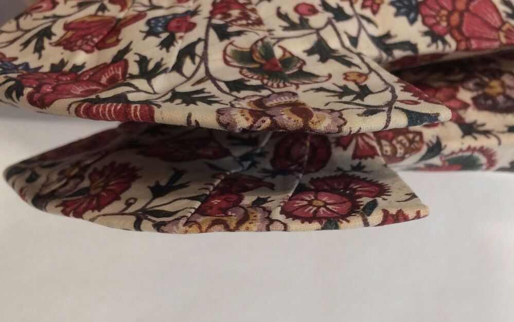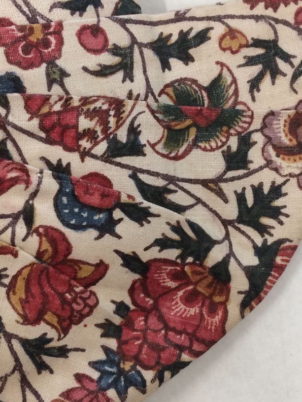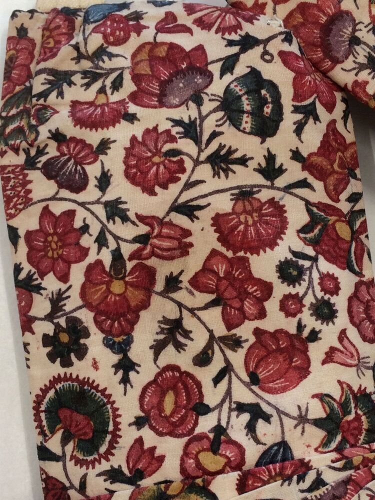 Sitsen kindermouwtjes met manchetten, met fijne dichte bloemranken op witte grond