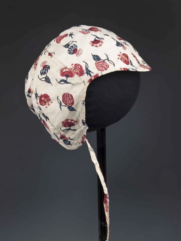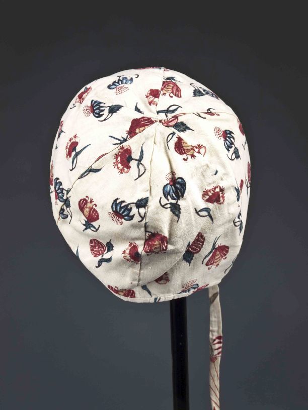 Sitsen jongensmuts, beschilderd met kleine bloemen op diagonale rijen op witte grond