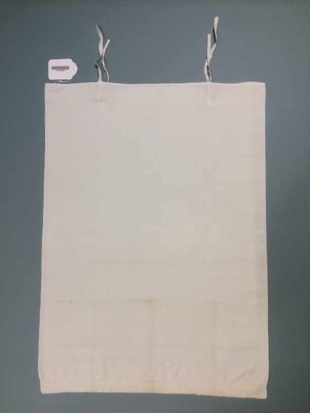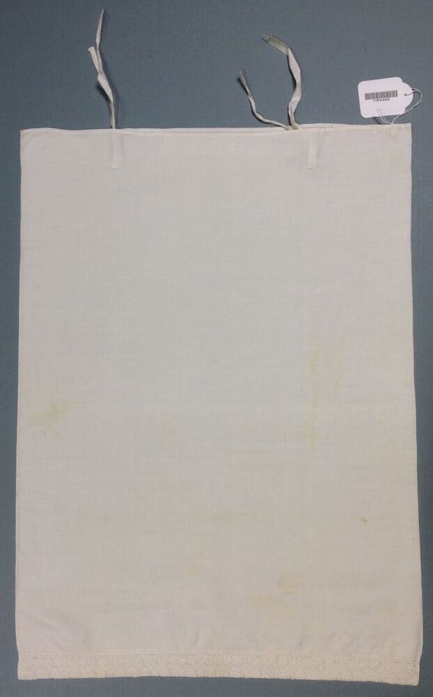 Wit linnen sloop met tussenzetsel van hollands kloskant en de letter N, uit groep van vier