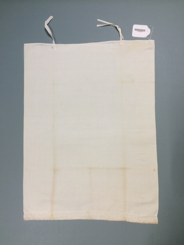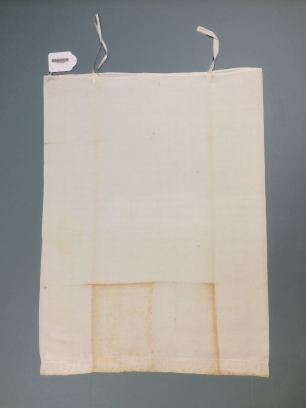Wit linnen sloop met tussenzetsel van hollands kloskant en de letter N, uit groep van vier