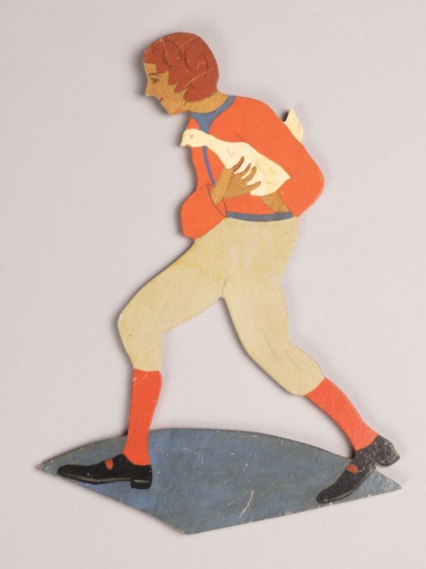 Pop voorstellend jongen met gans in zijn armen, Domme Hans