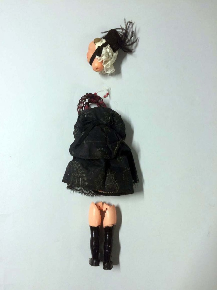 Roze kunsstof pop, draagt zogenaamd Fries Kostuum met kypske
