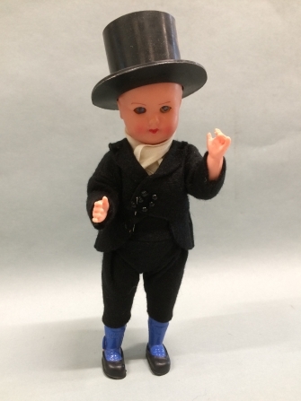 Pop, man, van roze kunststof, met zogenaamd Fries mannenkostuum
