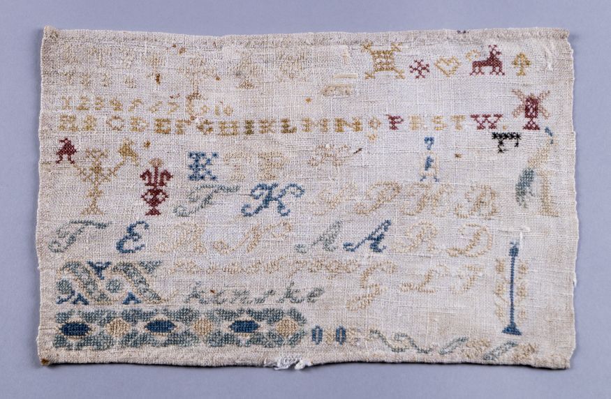 Merkletterlapje geborduurd met linnen door Kinske T.P. Ternaard, 1834
