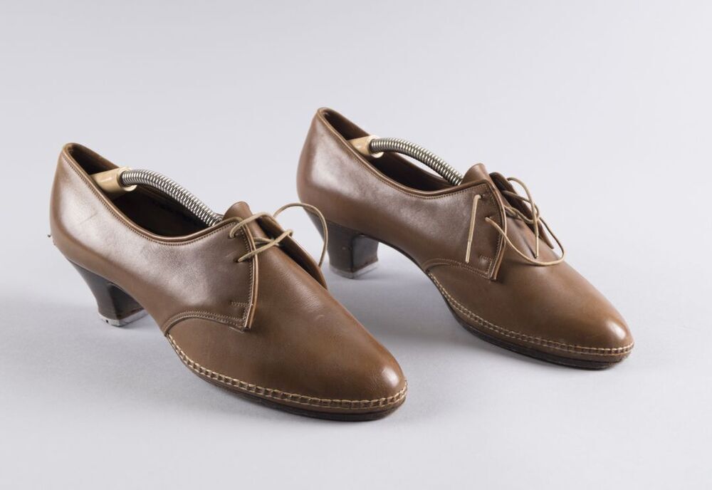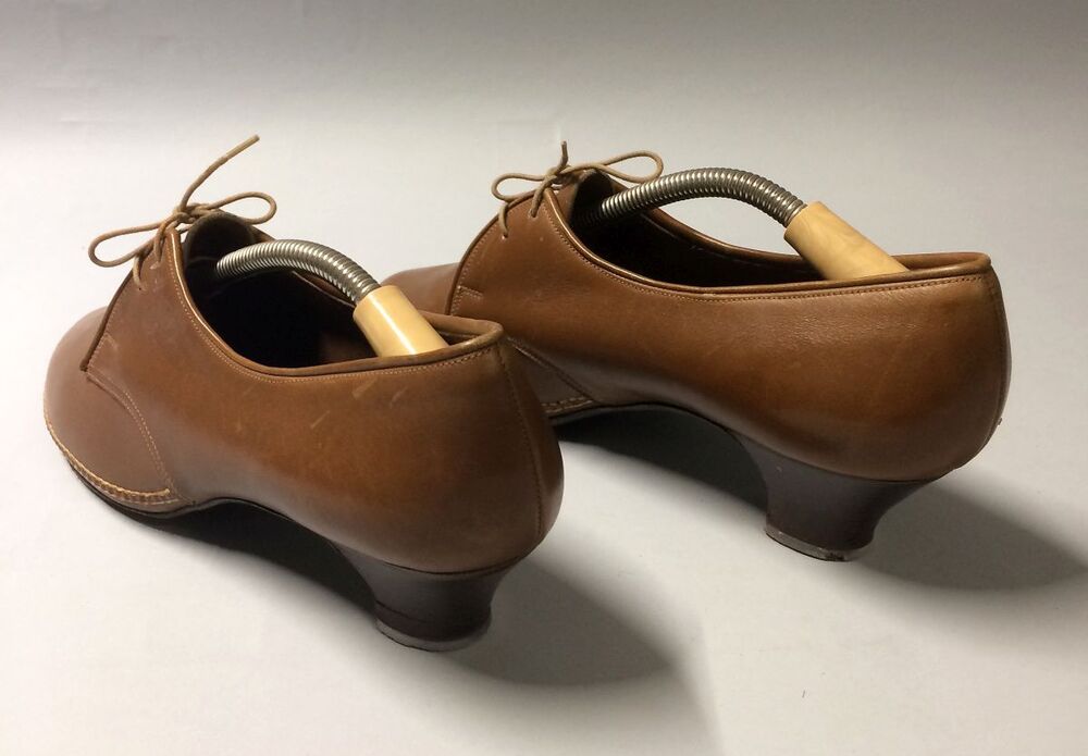 Paar zwarte damesschoenen maat 5½ van bruin leer