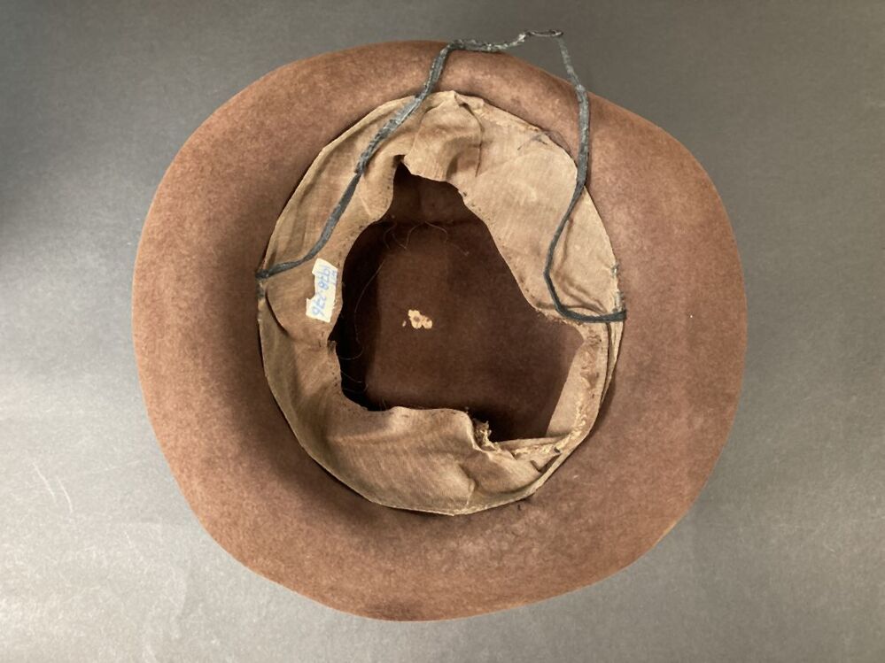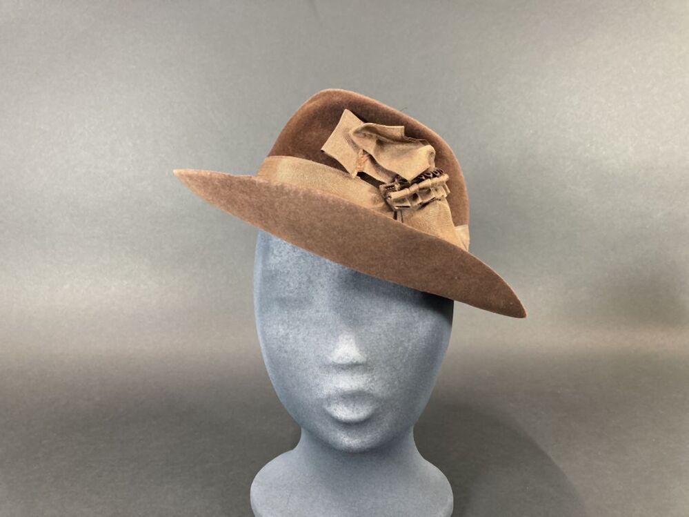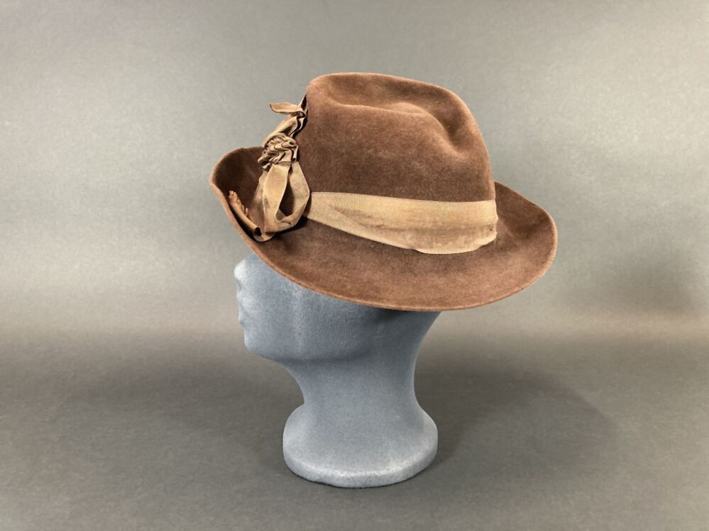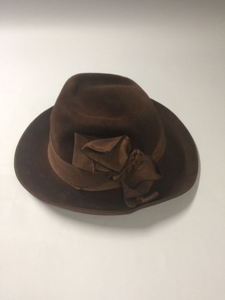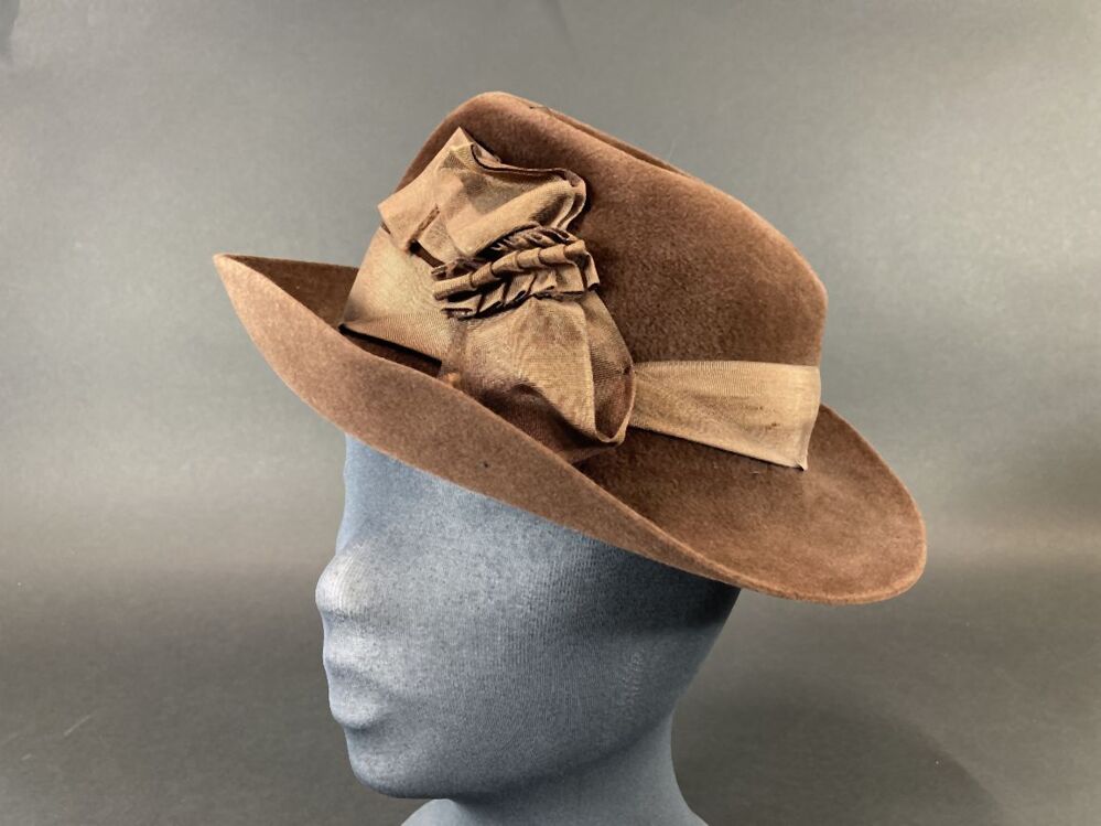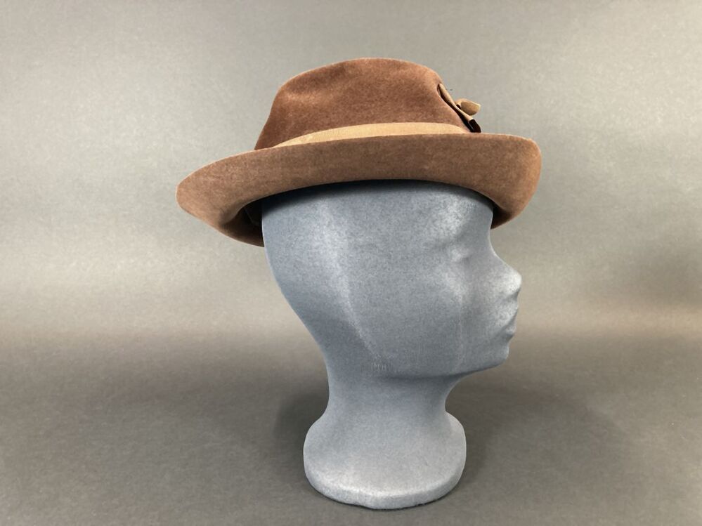 Hoed voor een vrouw van bruin vilt met gedeukte bol