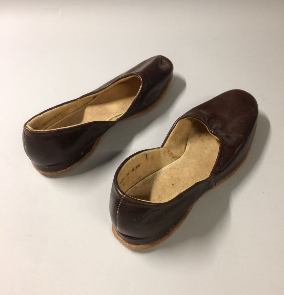 Paar bruine leren pantoffels maat 6.5