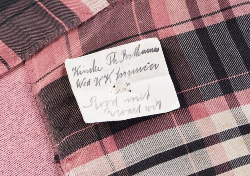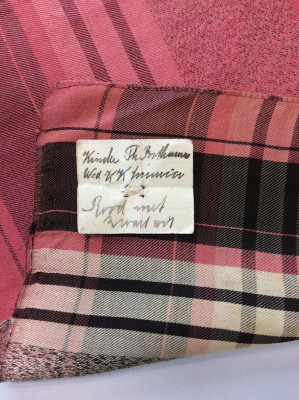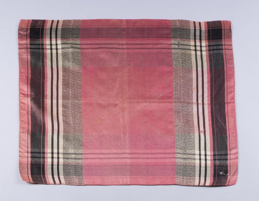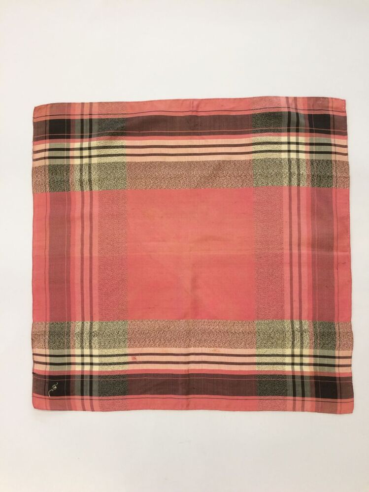 Sjaaltje van roze met zwarte en witte zijde en ingeweven ruitpatroon