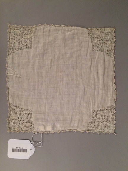 Zakdoek van wit batist met bloemmotief van perzisch ajour
