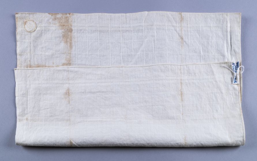 Zakdoek van wit katoen met ingeweven ruit en monogram KB