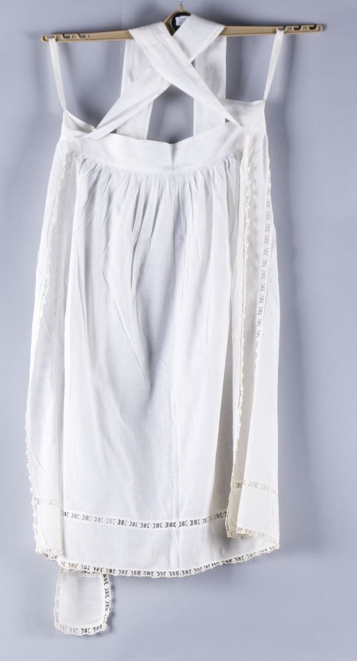 Wit schortje met gehaakte randjes en met brede tailleband