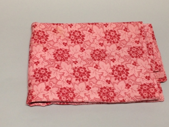 Roze, gebloemde sloop van katoen, zijsluiting met vier knopen en knoopsgaten