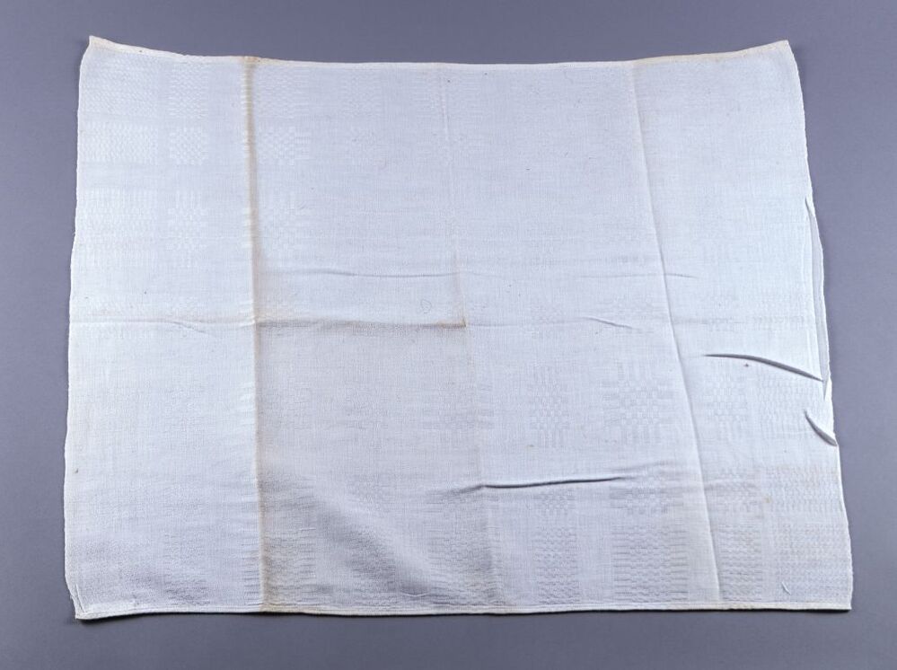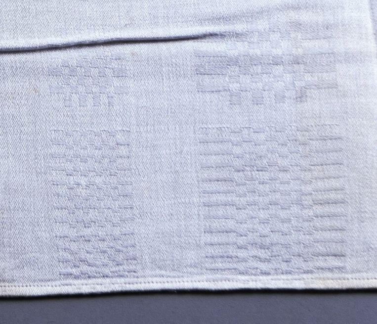 Servet van wit katoen met blokjespatroon, onderdeel van groep van drie