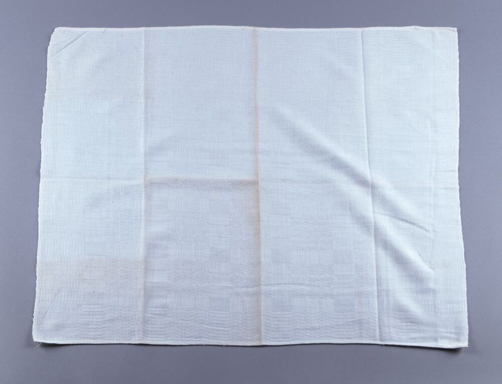 Servet van wit katoen met blokjespatroon, onderdeel van groep van drie