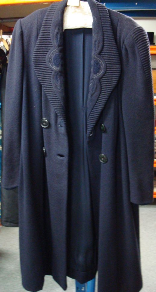 Mantel van dik zwart wollen crèpe weefsel