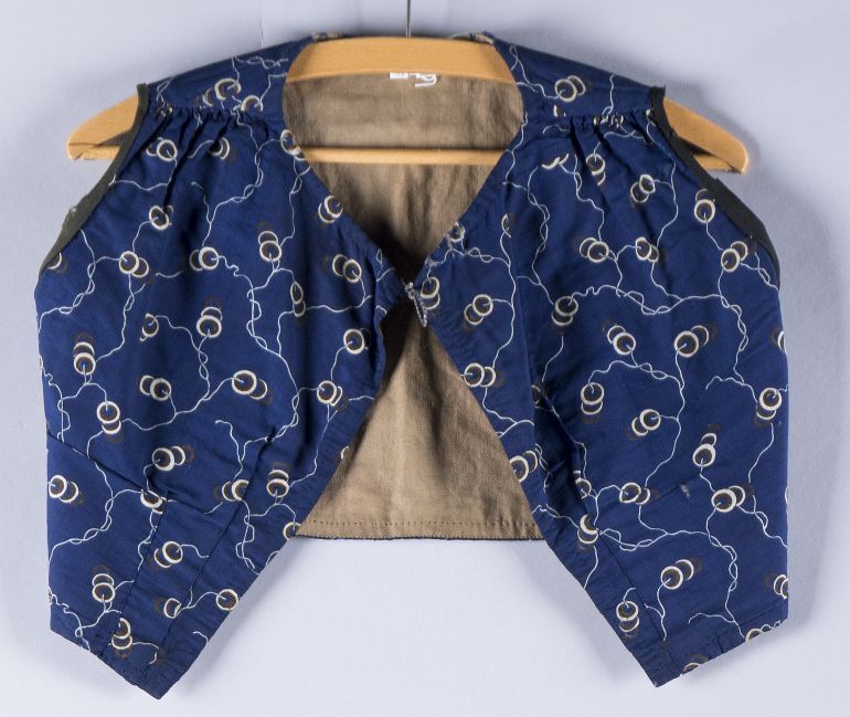 Onderjak van blauwe wollen mousseline met uitgespaarde rankmotieven