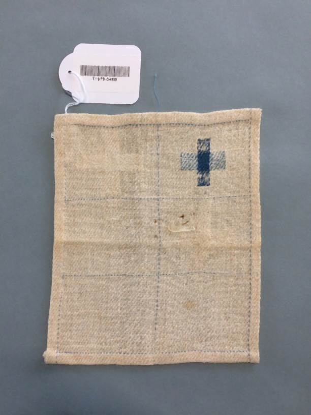 Stoplap van linnen met drie stoppen wit en blauw