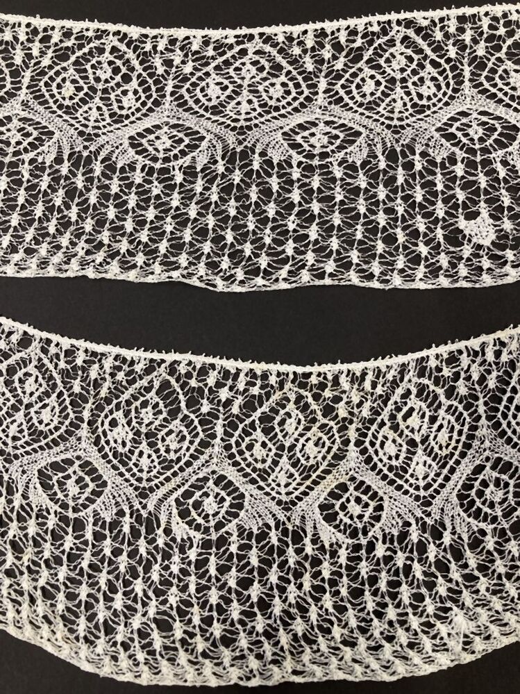 Strook van floddermuts, ajour breiwerk