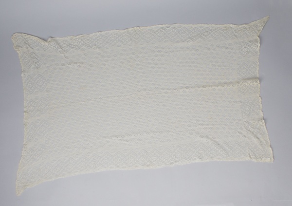 Ajour gebreid kleedje van wit katoen, rechthoekig