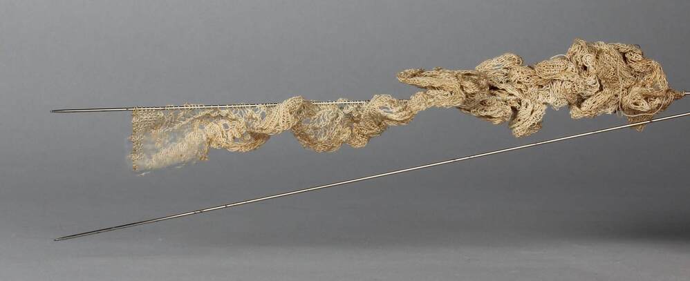 Twee dunne breinaalden met ajourbreiwerk