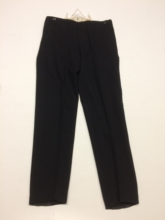 Zwarte lange broek, onderdeel van jaquetkostuum van zwart laken