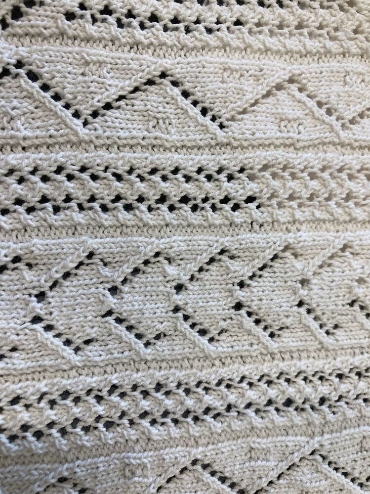 Morgenmuts van wit katoen, ajour breiwerk met hanenkam