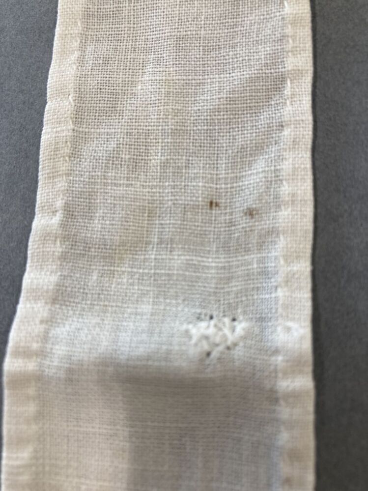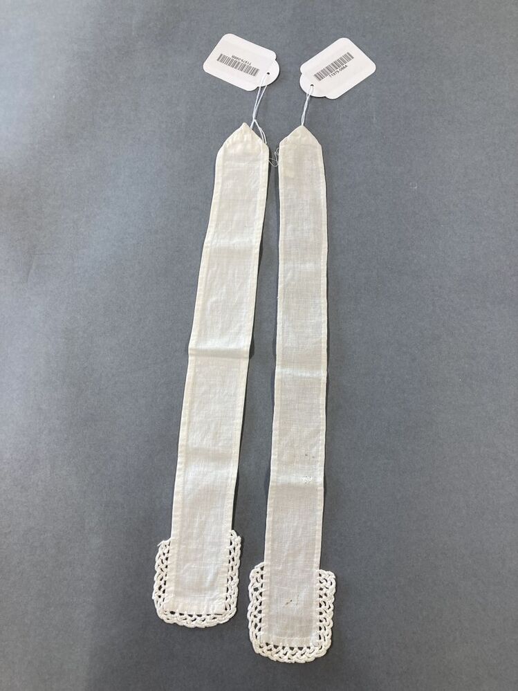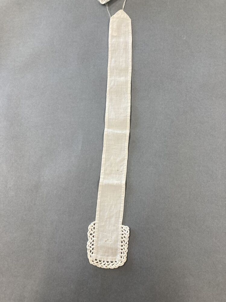 Katoenen keelband van vrouwenmuts, uiteinde heeft gehaakt kantje