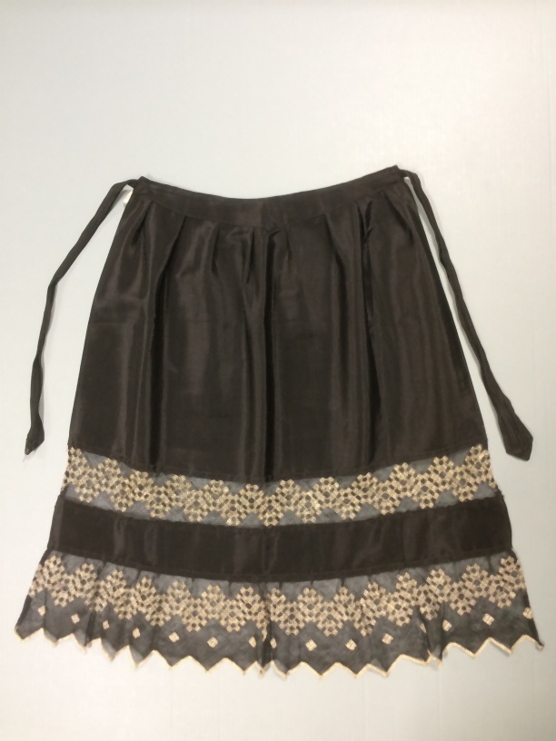 Schortje van zwarte stof met twee zwarte tule randen , wit doorgestopt