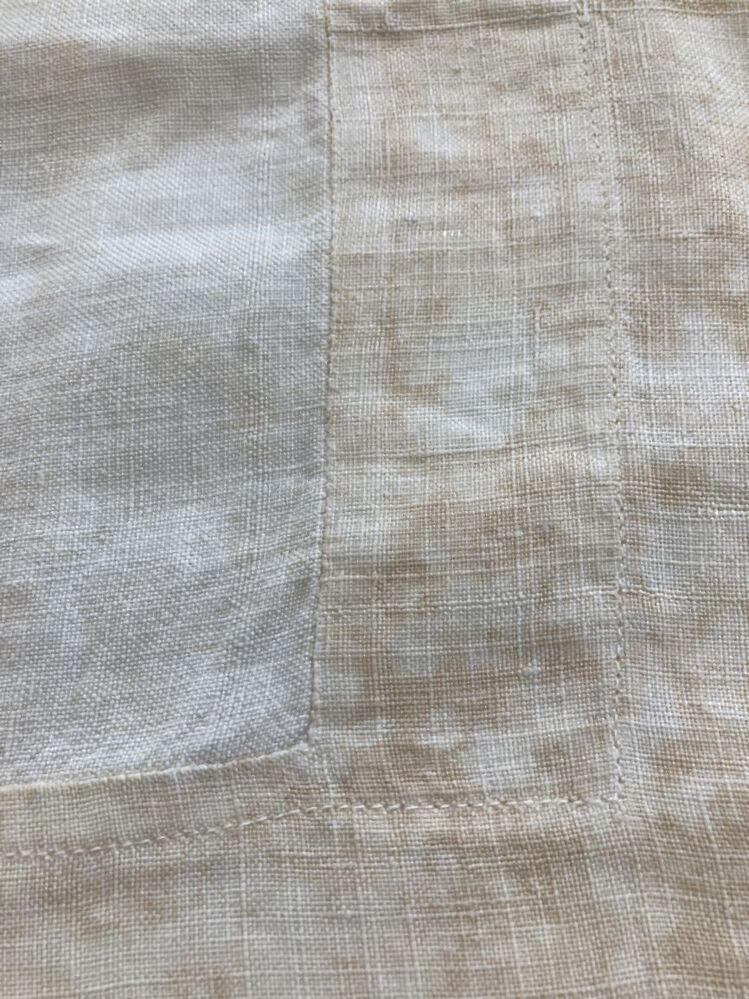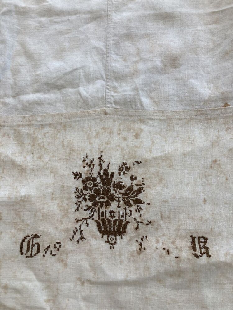 Laken van wit linnen met borduursel: G 18 . . . . . . R