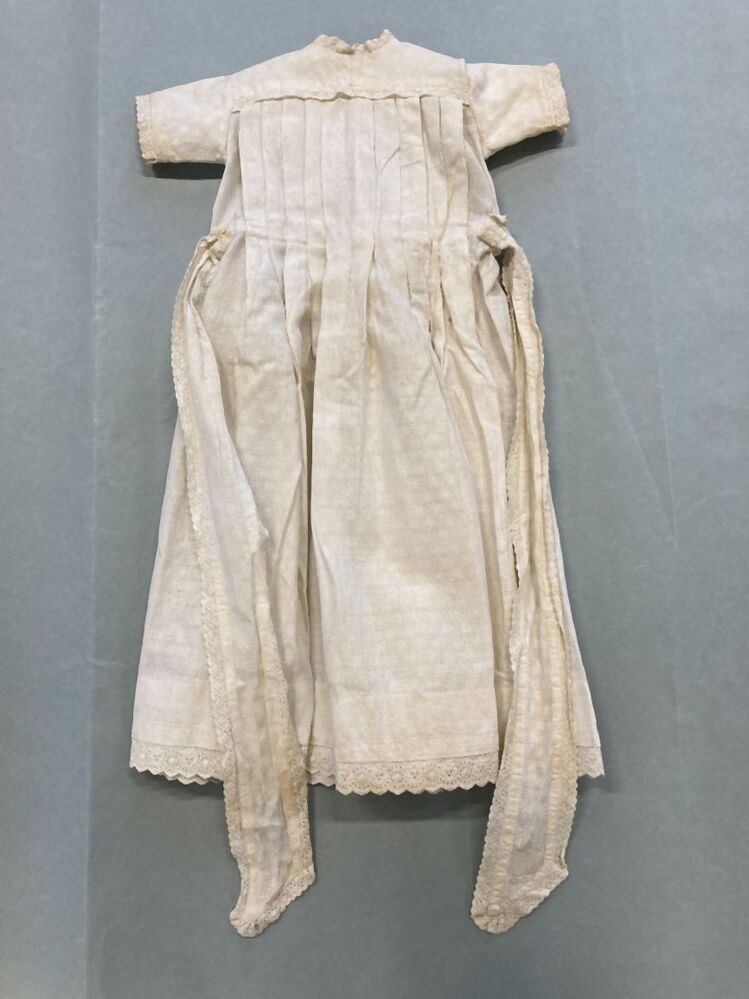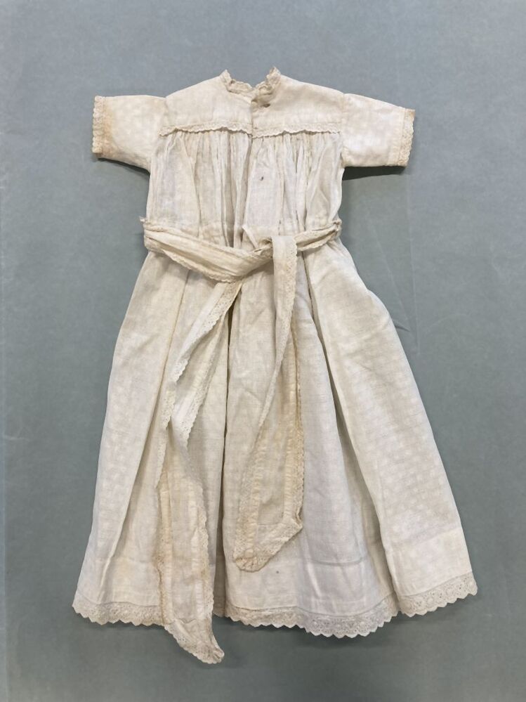 Kinderjurkje van wit katoen met ingeweven cirkels