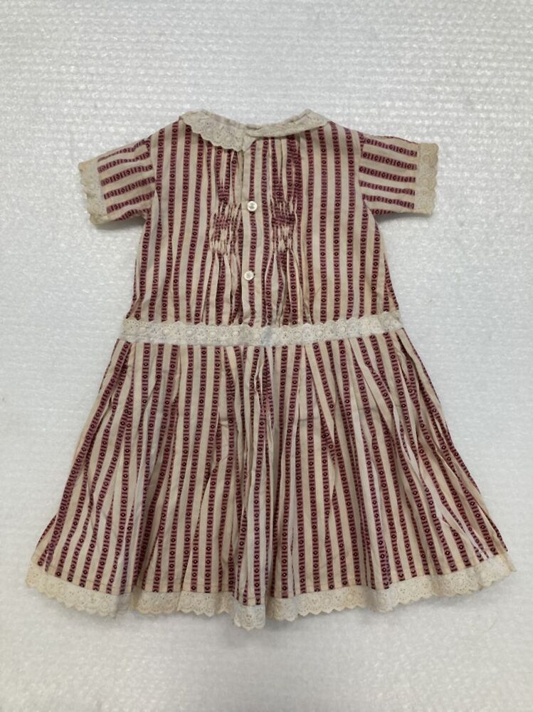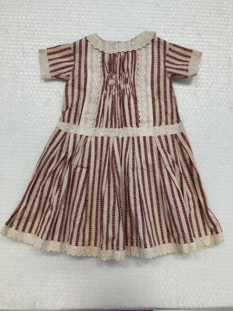 Kinderjurkje van gestreept bedrukt katoen afgezet met broderie