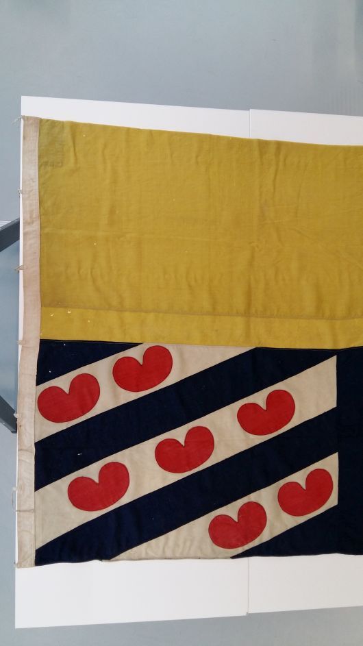 Langwerpig gekleurd doek dat tot herkenning dient of waarmee een sein wordt gegeven. (Woordenlijst vocsite.nl) https://data.cultureelerfgoed.nl/term/id/cht/053ec816-8dc9-46ea-b3e4-ee9ab8e89b6d