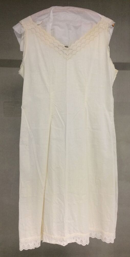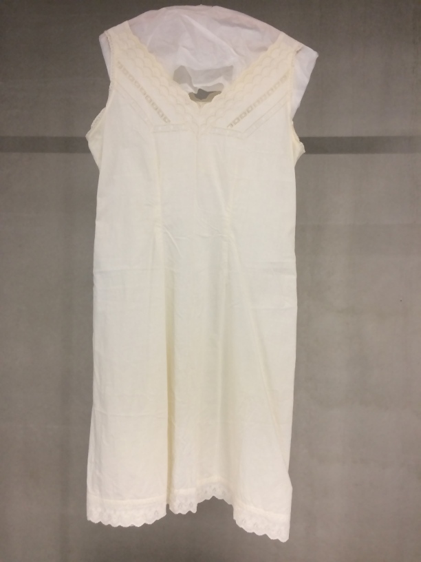 Wit katoenen onderjurk, afgezet met broderie