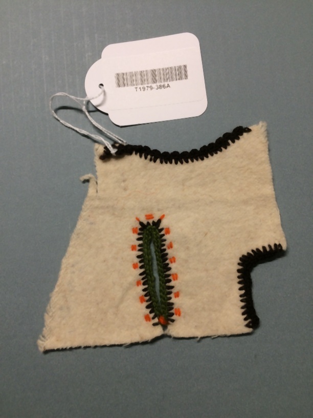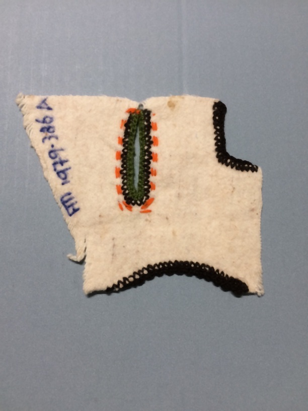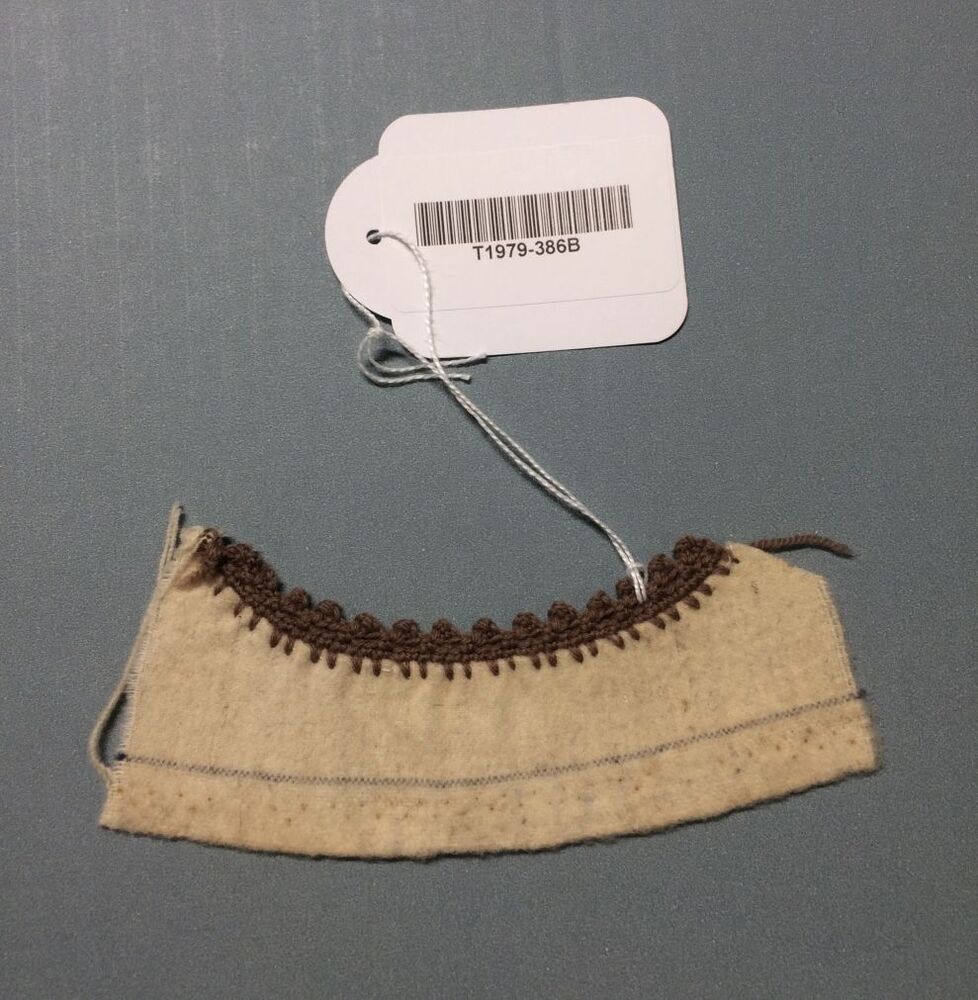 Proefstuk naaien, stofafwerken, flanel omgefestoneerd met wol