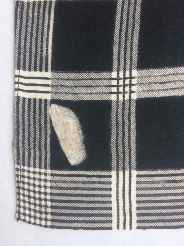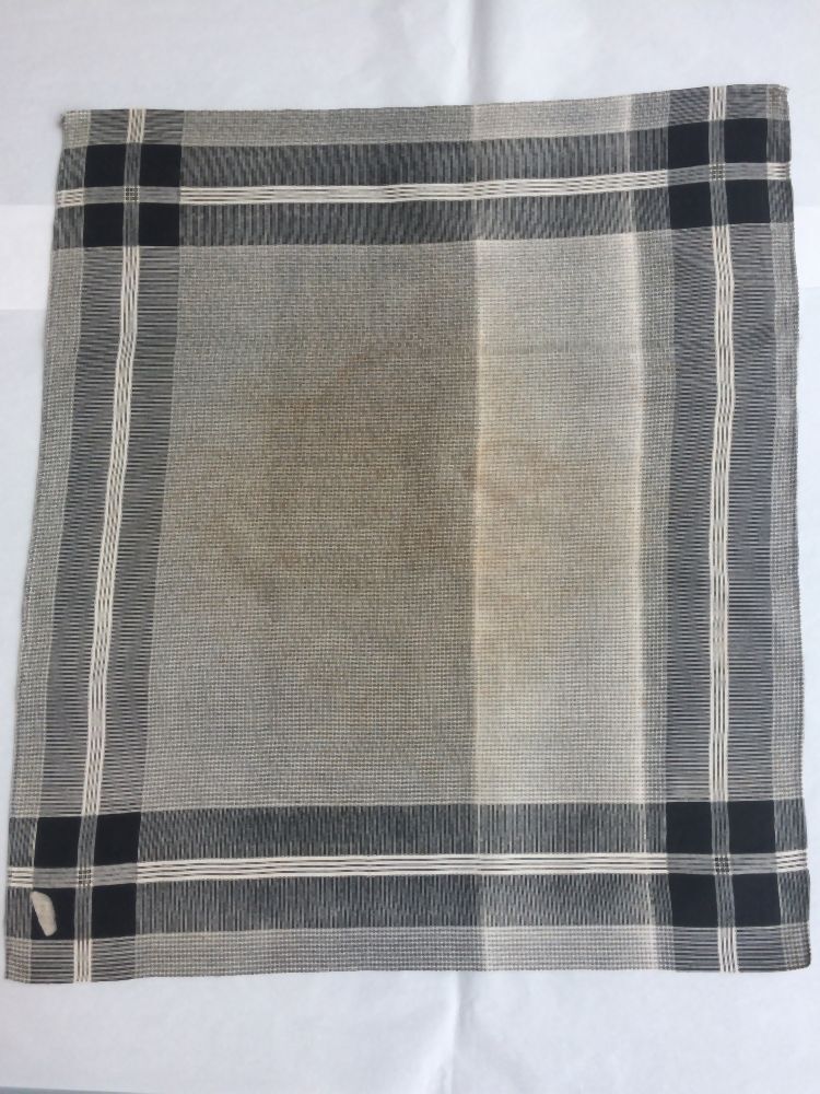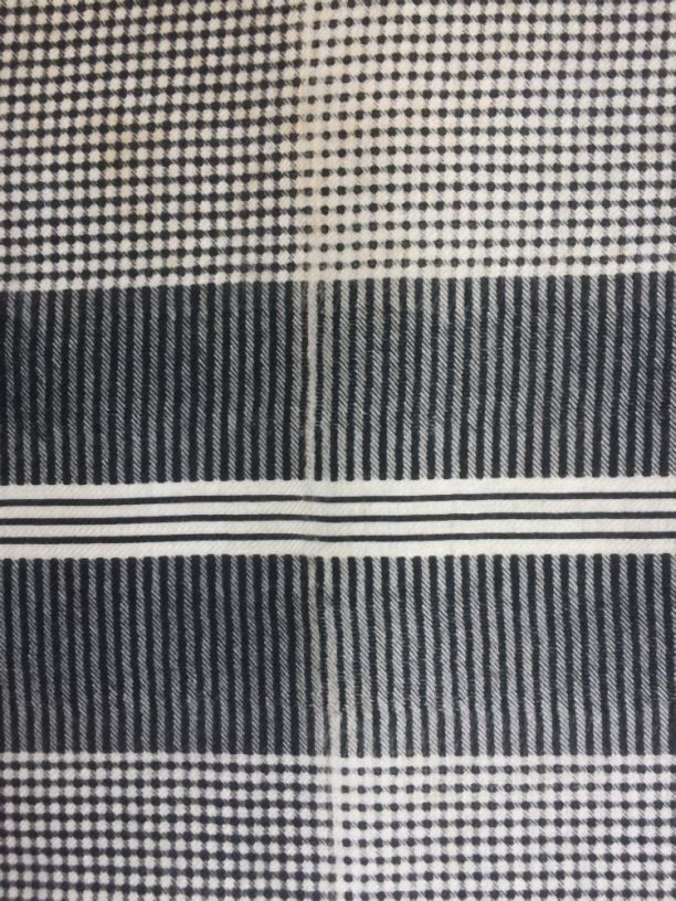 Doek of sjaal van wit katoen bedrukt in klein zwart ruitje met gestreepte randen