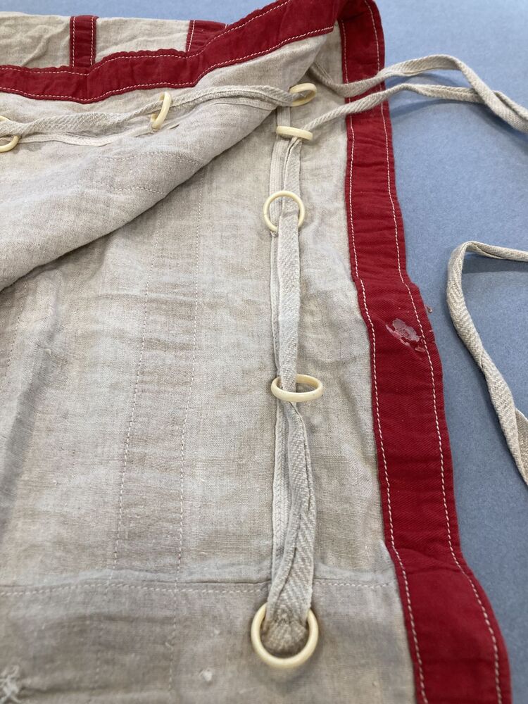 Reiszak van linnen afgezet met rood katoen