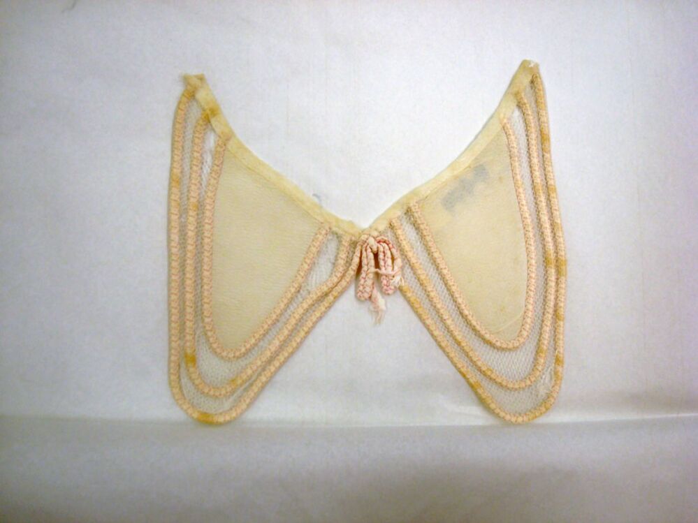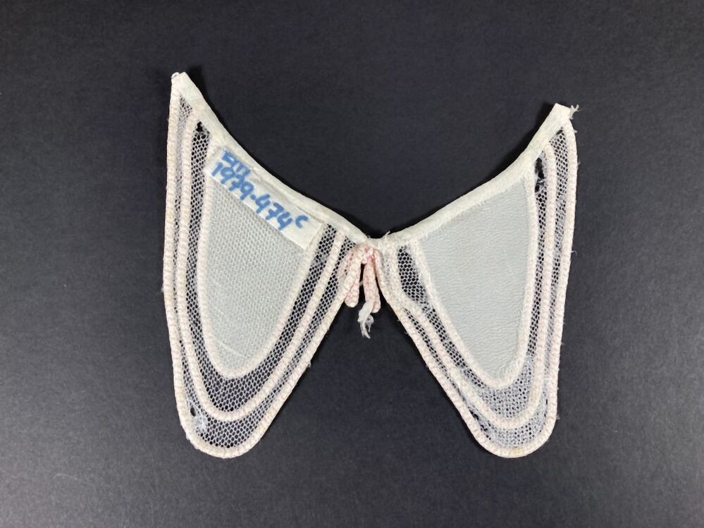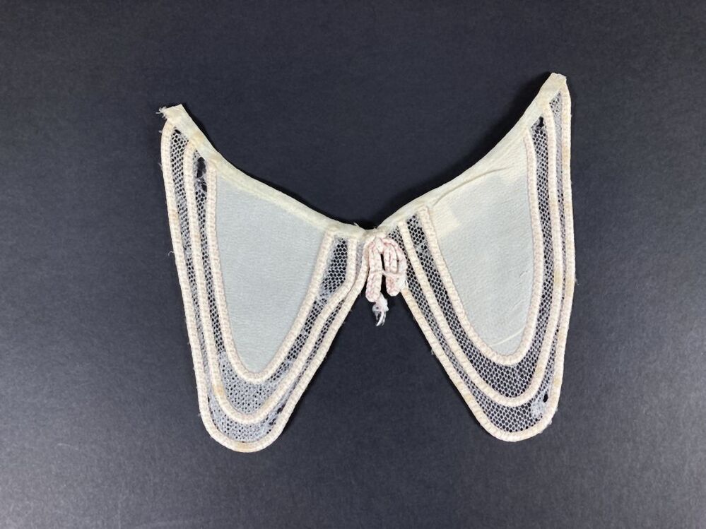 Kraagje van witte tule, afgezet met wit-roze koord